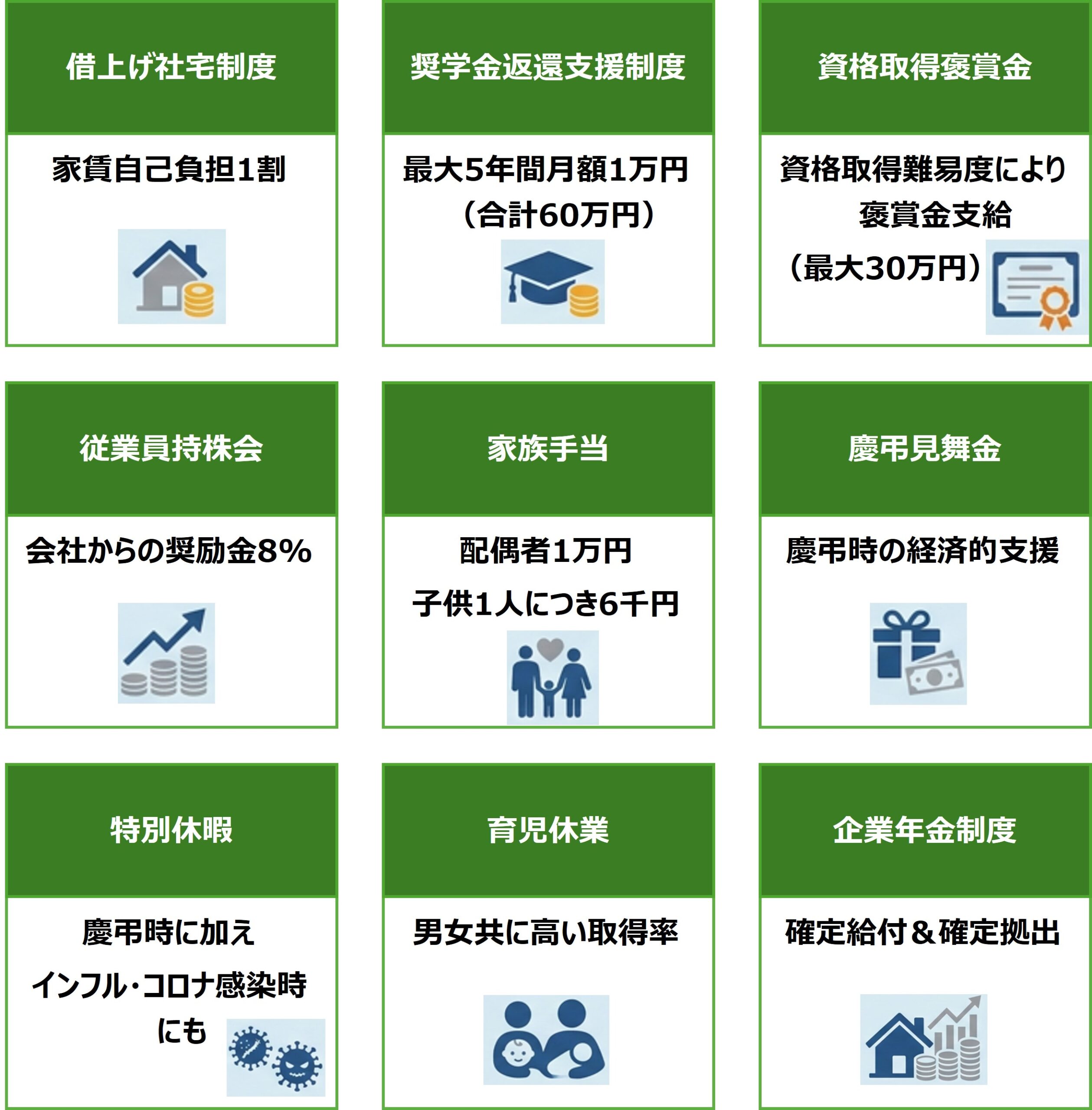 四国通建株式会社では、社員一人ひとりが力を発揮し、活躍できるよう、 さまざまなサポート体制を整えています。